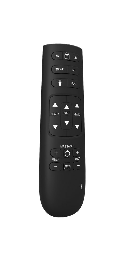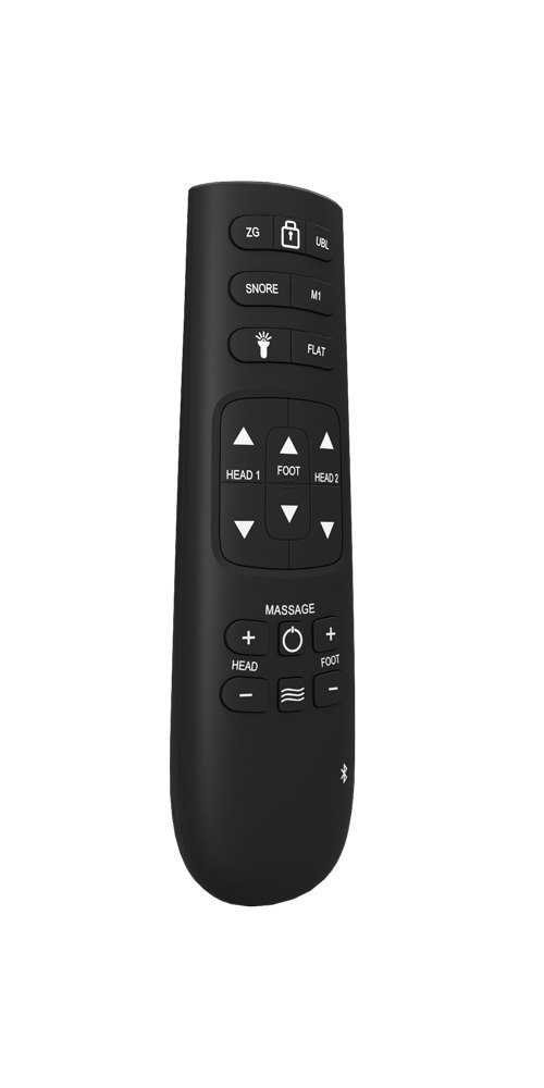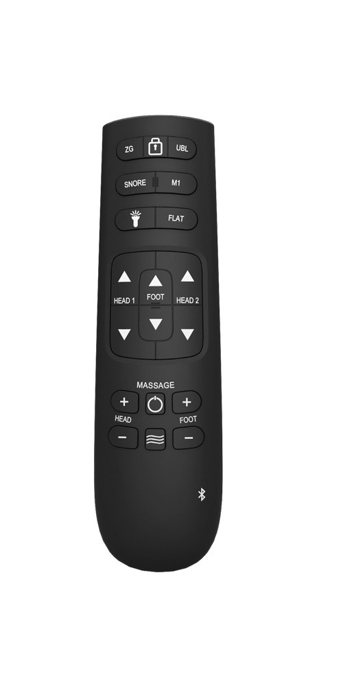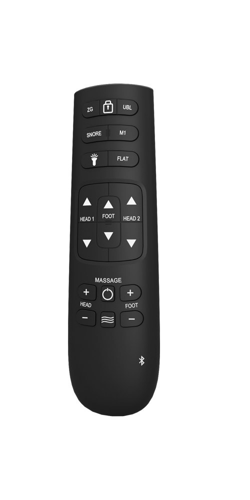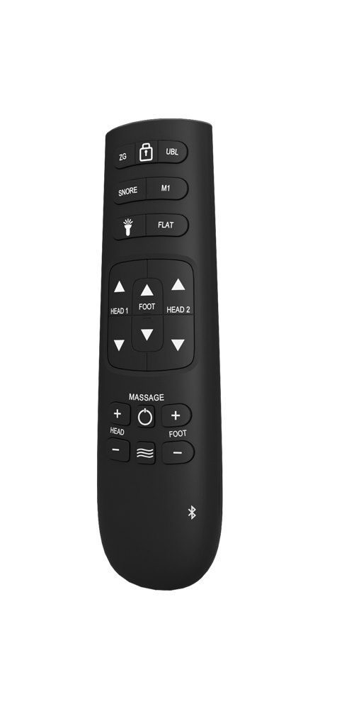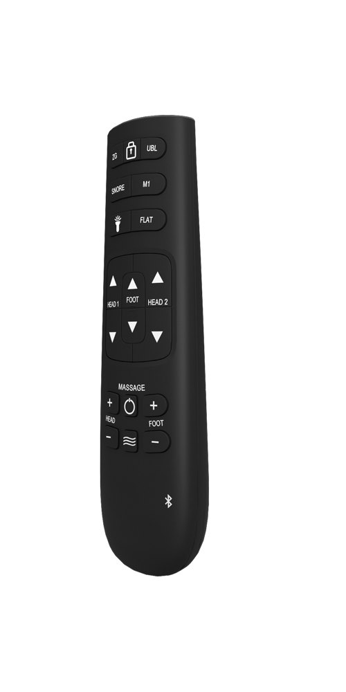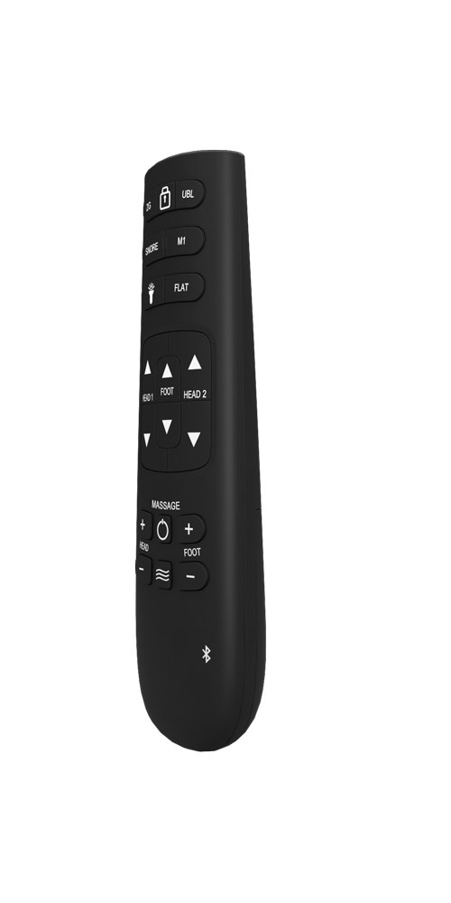 This base includes a wireless, Bluetooth, 19 button remote. The remote offers many features, including programmable positions and a snore button.